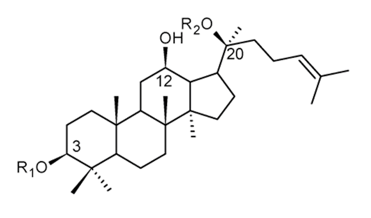 | G-Rb2 | 중추신경억제(진정, 수면유도), 정신안정, 진통, 해열, 혈청단백질합성 촉진, 중성지방분해억제 및 간기능보호 |